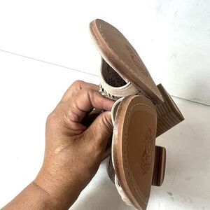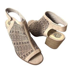 Vince Camuto Heeled Wrap Sandals Women's Size 9.5 M Tan Leather Open Toe Sling Back