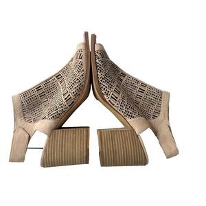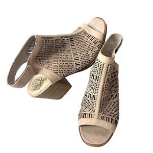 Vince Camuto Heeled Wrap Sandals Womens Sz 9.5 M Tan Leather Open Toe Sling Back