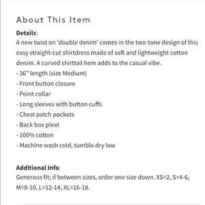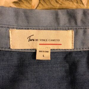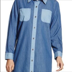Vince Camuto L Long Sleeve Denim Blue Color Block Pockets Shirt Dress