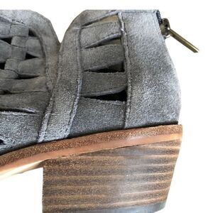 Round toe, Leather construction, Cutout detail, Back zip closure, Lightly padded footbed. Stacked block heel.