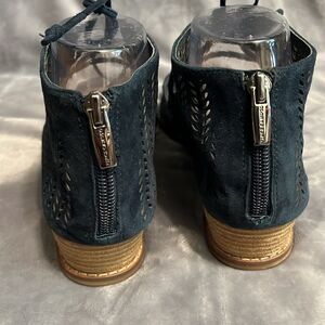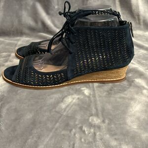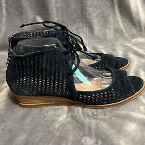 Vince Camuto Remme Navy Blue Suede Perforated Open Toe Wedge Sandal