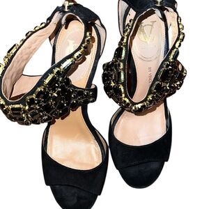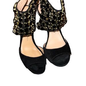 Vince Camuto Signature Elegant Black Suede and Gold Women's Sandals 8 M