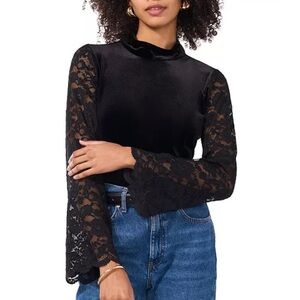 Vince Camuto Women's Velvet Mock-Neck Lace-Sleeve Top