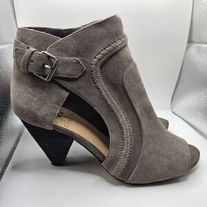 Vince Camuto gray suede; peep toe; zipper closure; wedge heel; great condition S