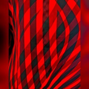 Awesome unique pattern. Red and black Buffalo Plaid, but the wavy feature sets it apart from similar Buffalo styles. Flat collar with slit neck, hangs low below pelvis. Some minor thread pulls (pictured), but on my honor, this top has only been worn a couple of times.