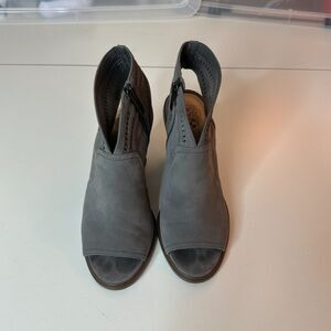 Vince Camutto Gray Koral Laser Cut Suede Open Toe Block Heel Booties Zip size 7