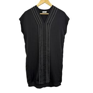 Vince Cap Sleeve V-Neck Embroidered Shift Dress Black Pleated Front Size 0