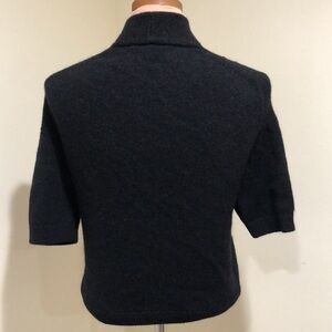 Excellent condition no stains rips or fading. No shrinking or pilling. Short sleeve, single button closure, slightly oversized fit cardigan. Dark charcoal gray fuzzy texture.