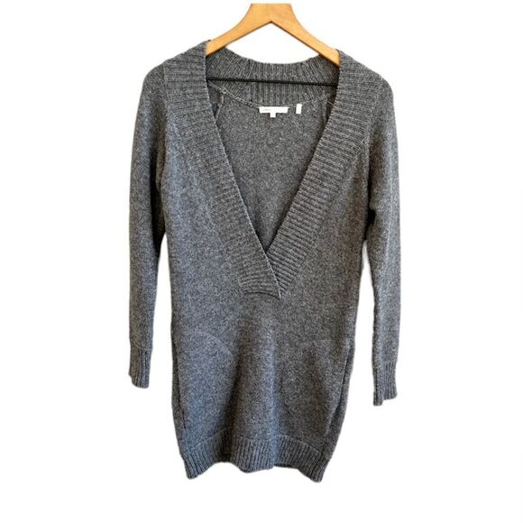 Vince Cashmere Alpaca Wool Long Sweater V-Neck Dress Charcoal Grey Extra Small