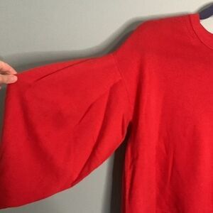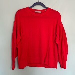Vince Cashmere Pleated Sleeve Crew Sweater Poppy Orange Red Small V486077865