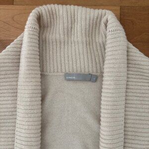 Vince Cashmere Shawl Collar Open Cardigan. Ribbed collar and cuffs. 27" from back top seam to hem.