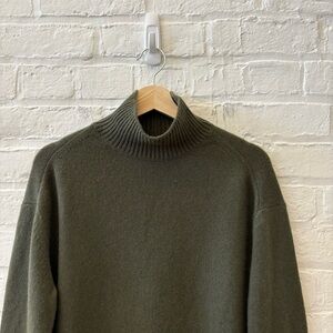 Vince. || Cashmere Side-Slit Turtleneck Sweater in Black Leaf Green Olive M NWT