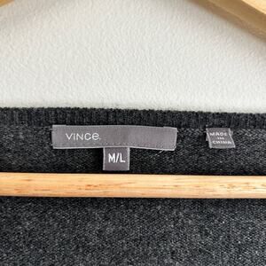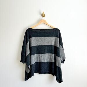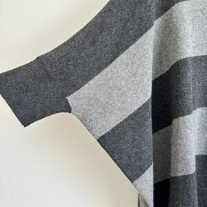 Details: Vince Cashmere Striped Dolman Sleeve Boat Neck Sweater - Size: M- Color: Gray/Black- Material: 100% cashmere - Features: Pullover, striped pattern, long sleeve, dolman sleeve, boat neck, stretch, knit, everyday, basic, comfort, breathable, casual.