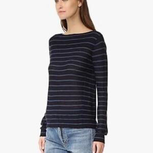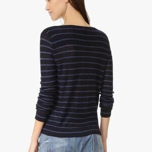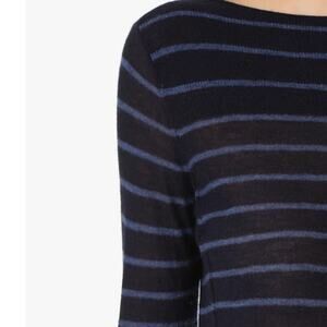 Details: Vince Striped Pattern Boat Neck Long Sleeve Pullover Sweater - Size: XS- Color: Blue, Black - Material: 100% Cashmere- Features: Striped pattern, boat neck, stretch, long sleeve, raglan sleeve, pullover, hand wash, comfort, breathable, casual. V391277022
