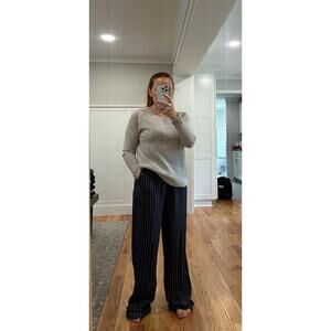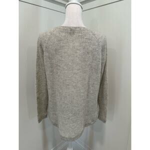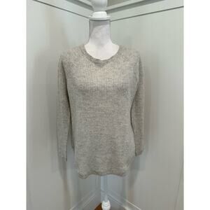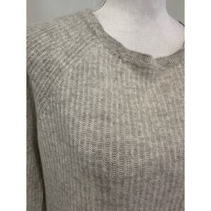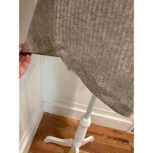 100% cashmere. Ribbed waffle like knit. Curved hem. Lighter weight. No obvious flaws or signs of wear.
