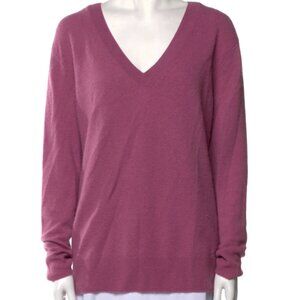 Vince lightweight cashmere v-neck sweater in orchid purple (not a deep purple, more between pink and purple). Designed for a slightly oversized, relaxed fit. Deep v-neck with rib-knit trim. Lightweight with soft, plush feel.