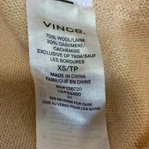 Vince Cashmere & Wool Blend XS Sweater with Boat Neck Collar & Cuffed Sleeves. Light camel color or peachy cream. Good pre owned condition. Very classy sweater.