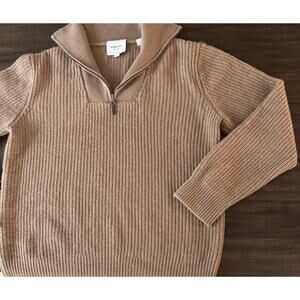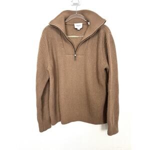 Vince Cashmere Wool Half-Zip Funnel Neck Sweater Womens Large Tan Soft Cozy Knit