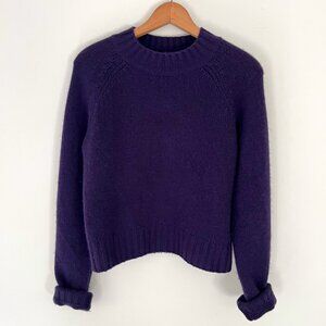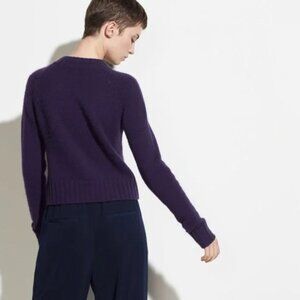 GUC The Shrunken Cashmere Sweater in Plum from Vince! No flaws like holes or stains but moderate pilling/fuzziness throughout. Features slightly cropped hem, ribbed trims and jewel neck. Very classic and classy, this is the perfect casually lux sweater! Super soft and cozy, looks effortlessly elevated!