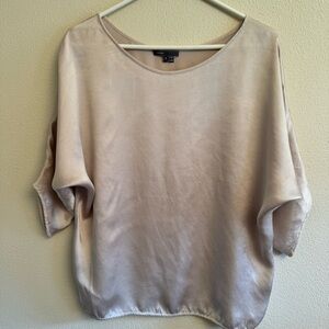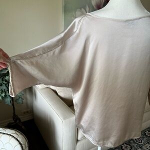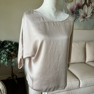 Vince Silk Champagne Raglan Sleeve Pullover Blouse Tee Luxurious Loose Fit Draping