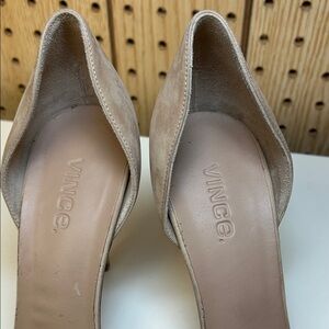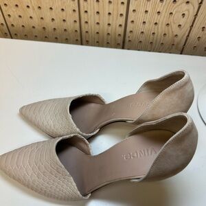 Chic Vince heels with a pointed toe. Versatile beige color. Ideal for any event.