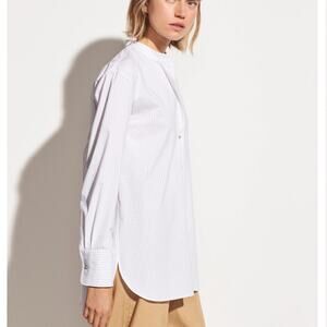 Vince Classic Stripe Band Collar Shirt in White/Black size XL