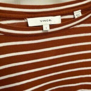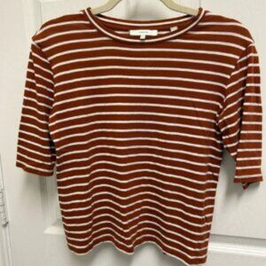 Size small. Clay and white colored crewneck top. Short sleeves. Waist length fit. Great condition.