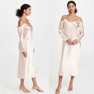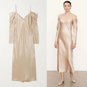 Vince Cold Shoulder Maxi Pink Dress Pearl Blush Draped Crinkled Size S