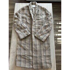 Vince Collarless Overcoat Camel Plaid Wool Blend Jacket Size Medium