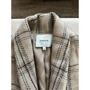 Vince Collarless Overcoat Camel Plaid Wool Blend Jacket Size Medium. Excellent condition, no flaws!!