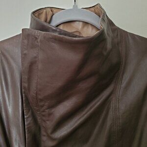 - Brand new leather jacket with light, store-related scratches on the front. Scratches are located on the portion of the jacket that is intended to be tucked in. Please see the last two photos for details.