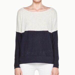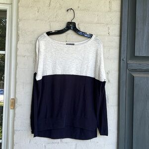 Vince Color Block Navy/White Lightweight Cotton Sweater Size Small
