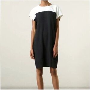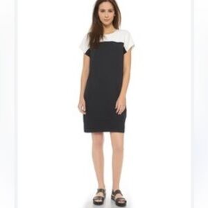 Vince Colorblock Short Sleeve Shift Dress Pockets Black/White Small