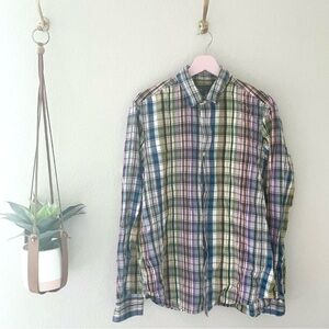 This is a gently used Vince Colorful Multicolor Plaid Long Sleeve Button Down in Size L. In excellent condition. Minimal wear. See all pics for condition.