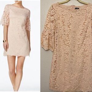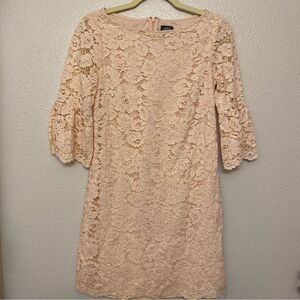 Vince Comuto blush Pink Lace Mini Dress bell sleeves scalloped scoop boat neck 4
