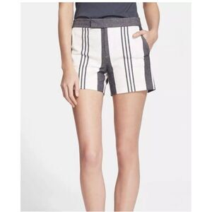 Vince Cotton Blend Shorts White Striped with Pockets Zip Closure Coastal size 2