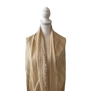 Vince Cotton Gauze Awning Stripe Travel Scarf Beige Parchment