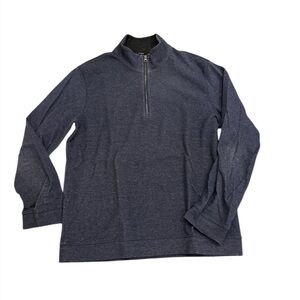 Vince Cotton-Blend Mock Neck Quarter-Zip Pullover Heather Navy Large