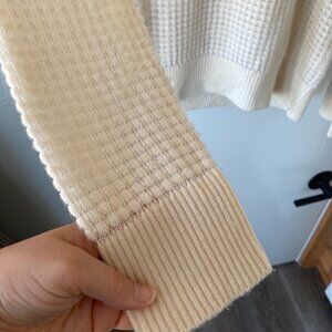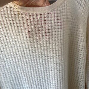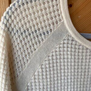 This is a beautiful Vince, Cashmere Sweater. The color is a light cream with a knitted details that give this piece more texture than a solid-knit sweater.