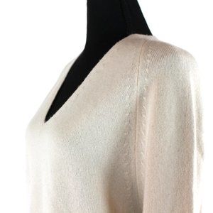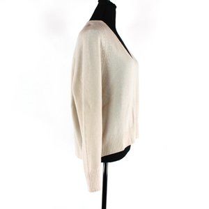 Vince Cream Cashmere V-Neck Raglan Long Sleeve Sweater Small High Low Hemline