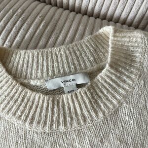 Elegant cream sweater with a classic crew neck. Soft and comfortable with a wool/silk blend. Good condition, light pilling, no tears/holes or marks. Fits like a womens S.