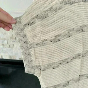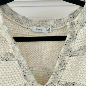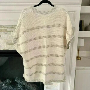 Excellent gently used condition. Cream and gray cable knit detailing. Oversized fit. V-neck neckline, small side slits at waist.