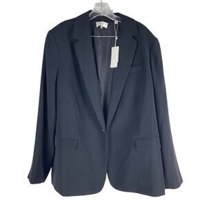 Vince Crepe One Button Blazer Jacket Flap Pockets Black Size 20