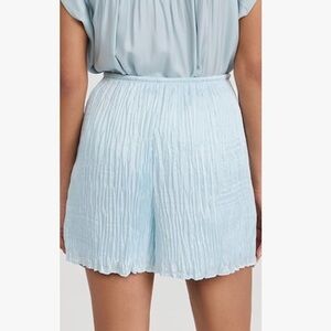 Vince Crushed Pleat Sky Light Blue Elastic Waist Comfy Shorts XL