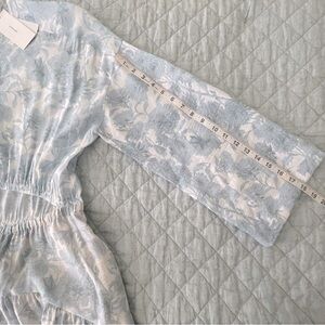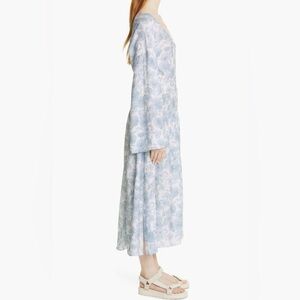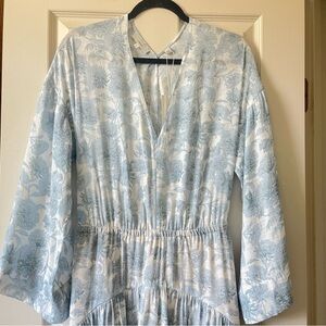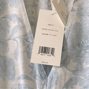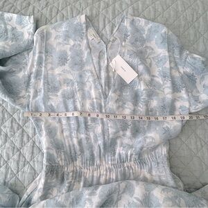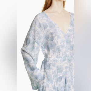 Vince Dahlia Floral Summer Dress Long Sleeve V Neck Women M Baby Blue White