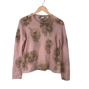 Vince Dahlia Print Alpaca & Mohair Blend Crewneck Sweater Medium Semi Sheer