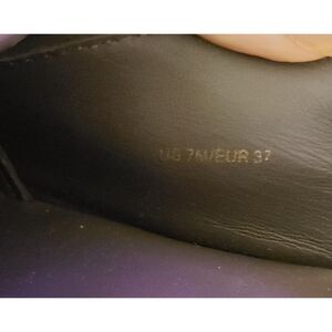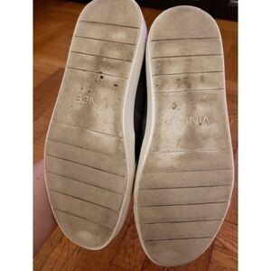 Women’s Blair leather sneakers by Vince. These dark gray shoes have a textured upper with a slip on casual style. They are a leather upper approx 1” platform, padded insole, rubber sole,