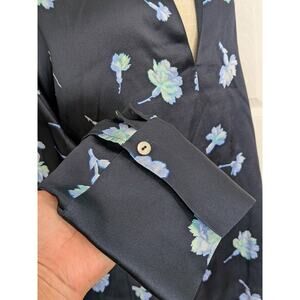 Vince Designer Sea Carnation Blue Floral Print 100% Silk Blouse Size 1X Luxury