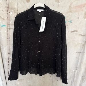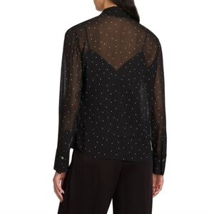 Vince Dot Print Sheer Silk Long Sleeve Blouse