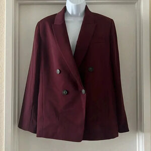 Vince Double Breasted Crepe Suit Blazer -Plum Wine